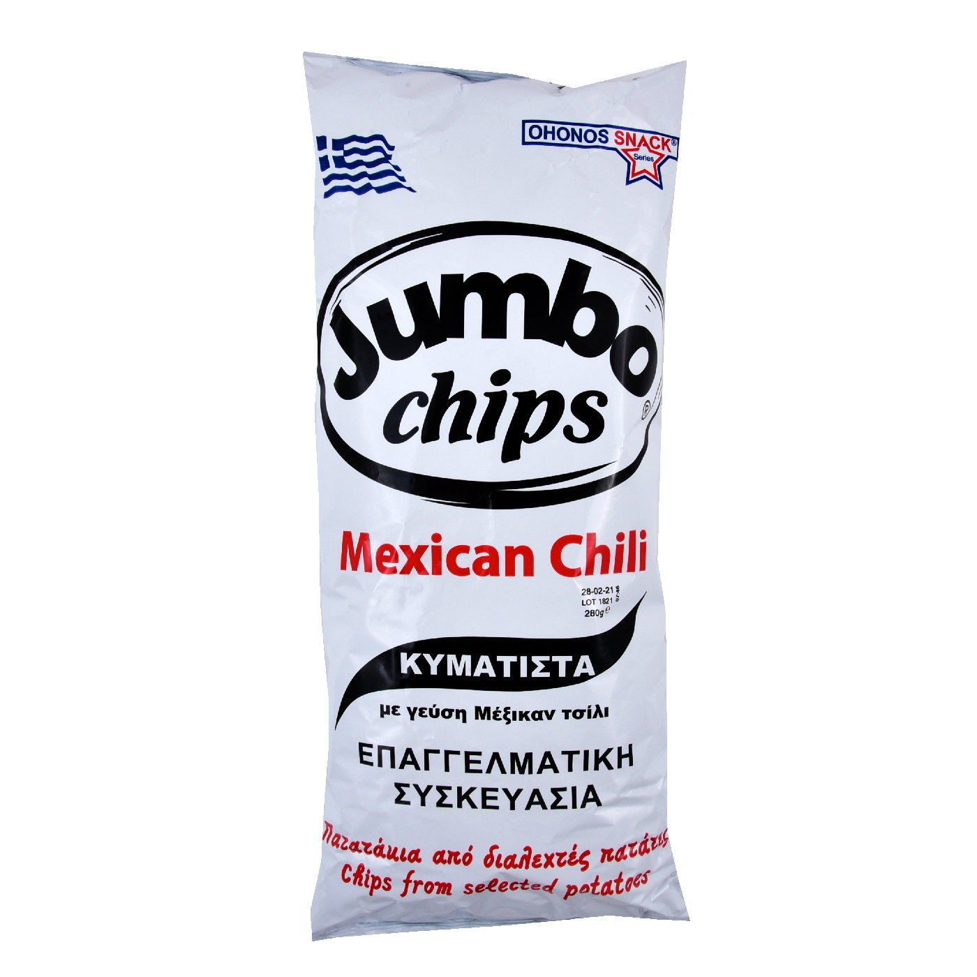 Πατατάκια τηγανισμένα με ηλιέλαιο υψηλής περιεκτικότητας σε ελαικο οξύ με γεύση τσίλι.